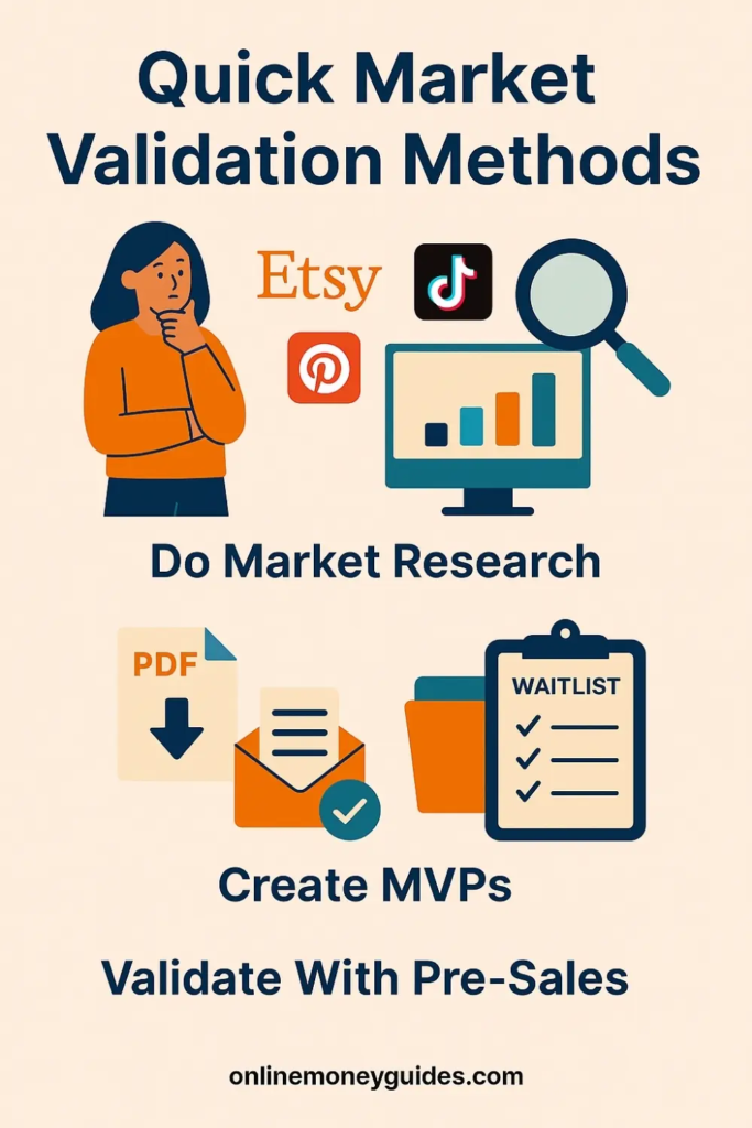 Validation helps you avoid months of wasted effort. It’s your reality check before the excitement takes over. Here’s how to approach it like a digital entrepreneur instead of a dreamer.
