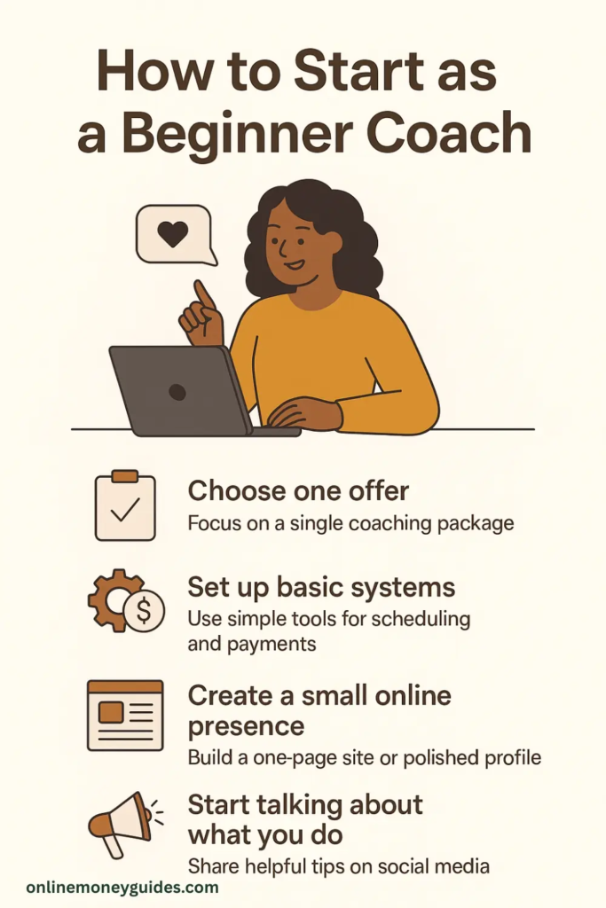Once you’ve chosen your niche, the next question is usually, “But how do I actually start?” The good news is that virtual coaching makes it easier than ever to launch with minimal risk. You don’t need a fancy office, a big following, or a complicated website to begin.