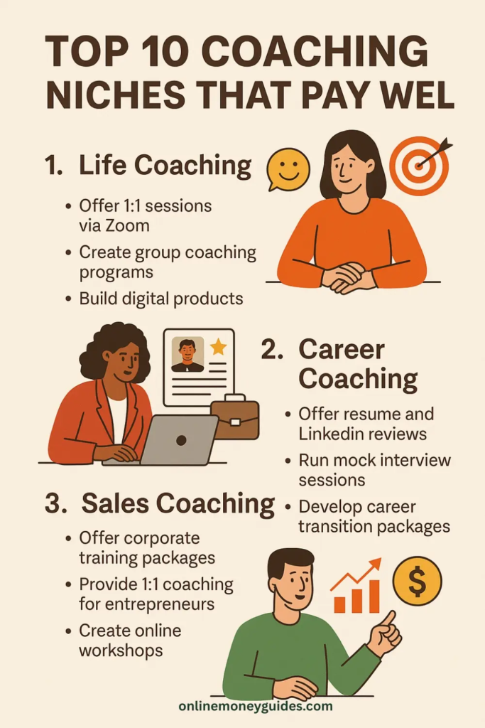 • The 10 most profitable coaching niches that consistently attract paying clients.