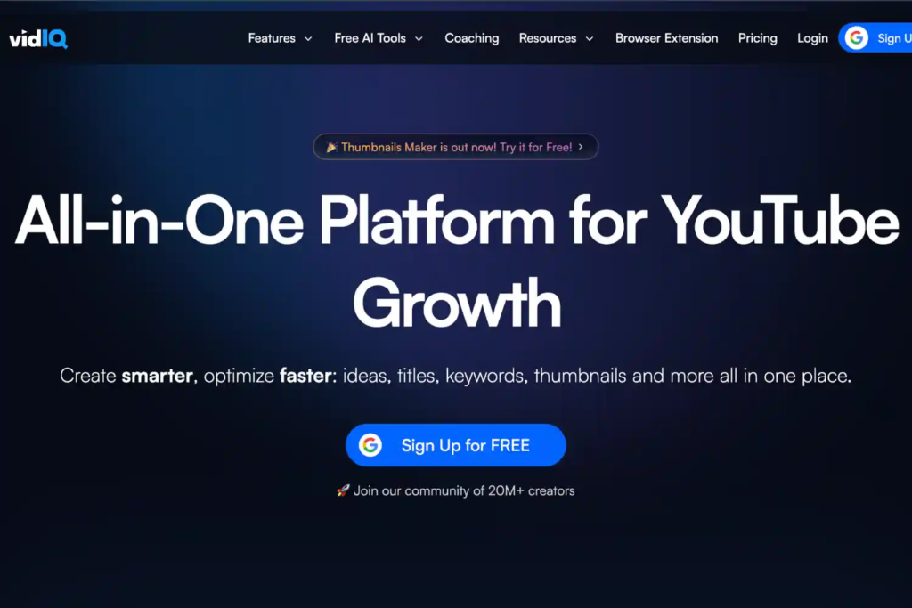 VidIQ is one of the best analytics tools for creators who want data-backed growth. It helps you: