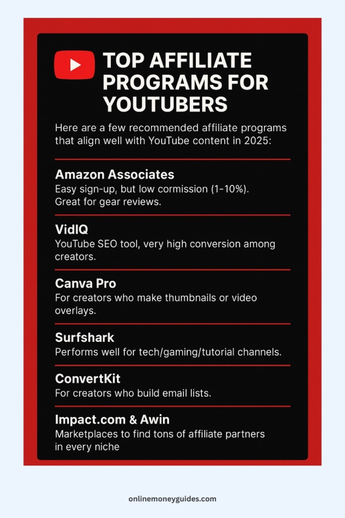 - Promote products (e.g., Amazon, Canva, VidIQ) with your unique links.