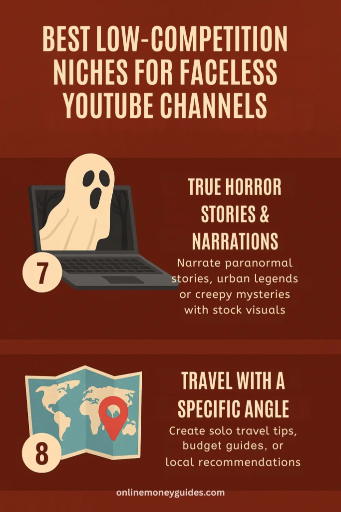 Storytelling channels have exploded in recent years, but the horror niche remains surprisingly underserved outside of big names. If you enjoy narration or researching unusual stories, this is a faceless YouTube niche with high engagement potential.