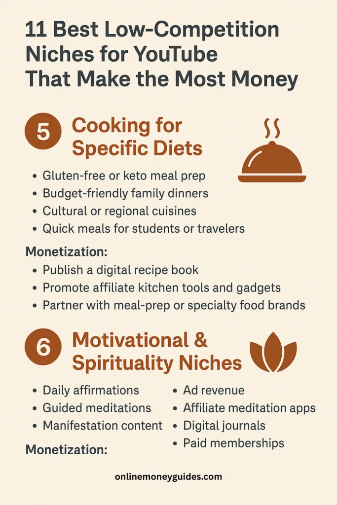 Cooking niches often see $3–$7 RPM, and the monetization extends beyond ads. You can: